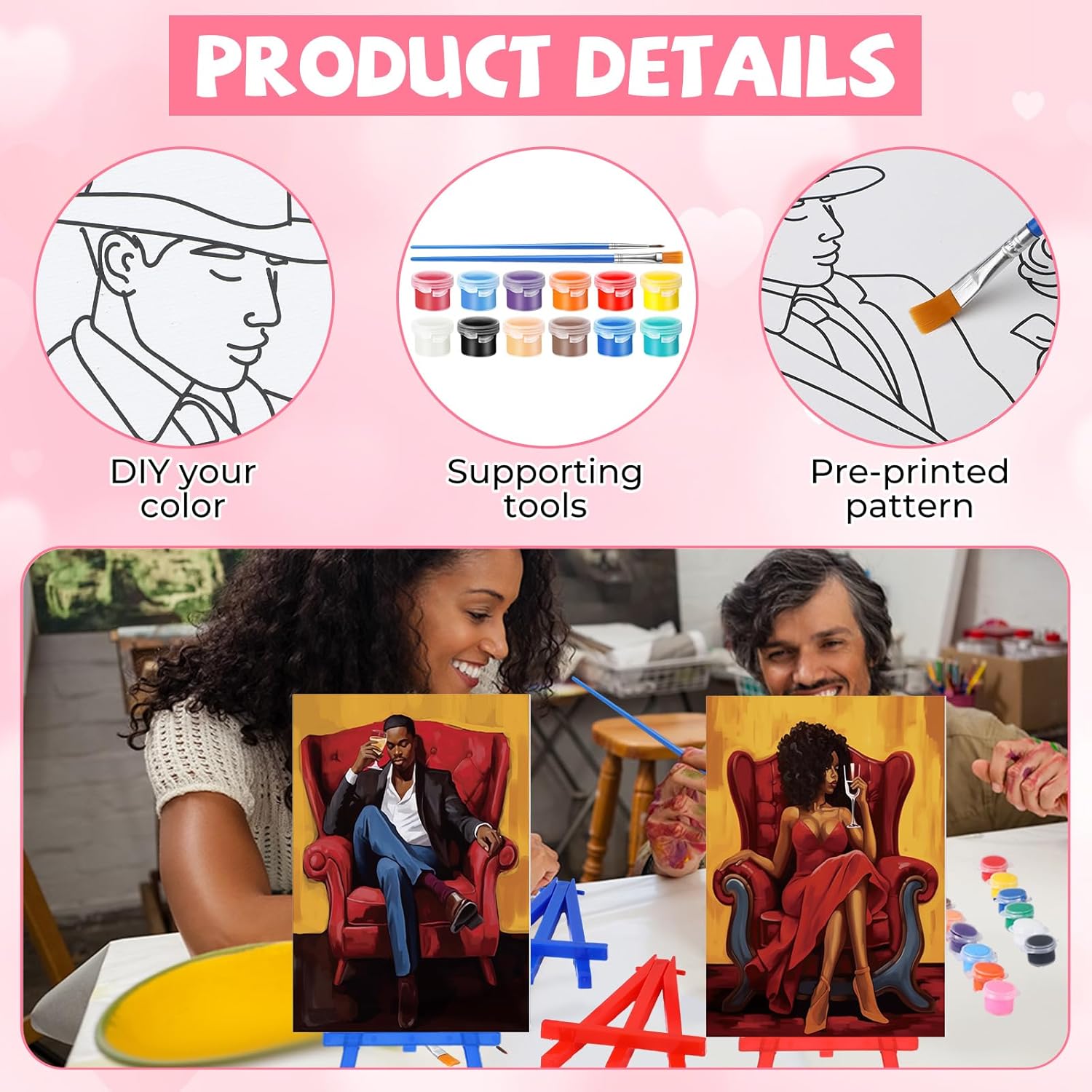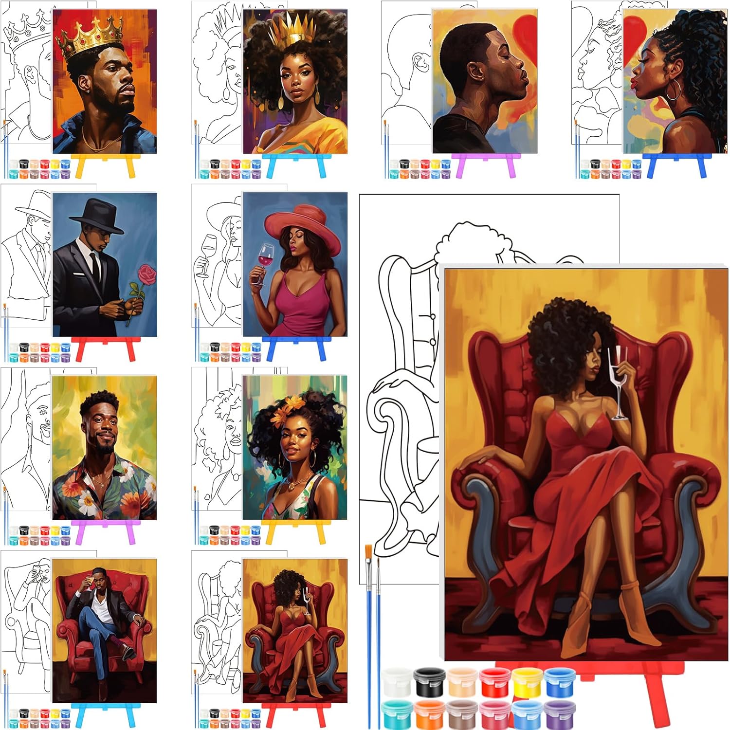 - 10 Pre Printed Canvases: 10 kinds of Valentine's Day patterns are engraved on the pre drawn board; Include women, man, African queen patterns, the size of: 7 x 5 x 0.1inch/18 x 13 x 0.3cm, cute and easy, you can use the provided paint to color according to your own aesthetics, improve your painting creativity in the process, and also reduce stress and relieve anxiety