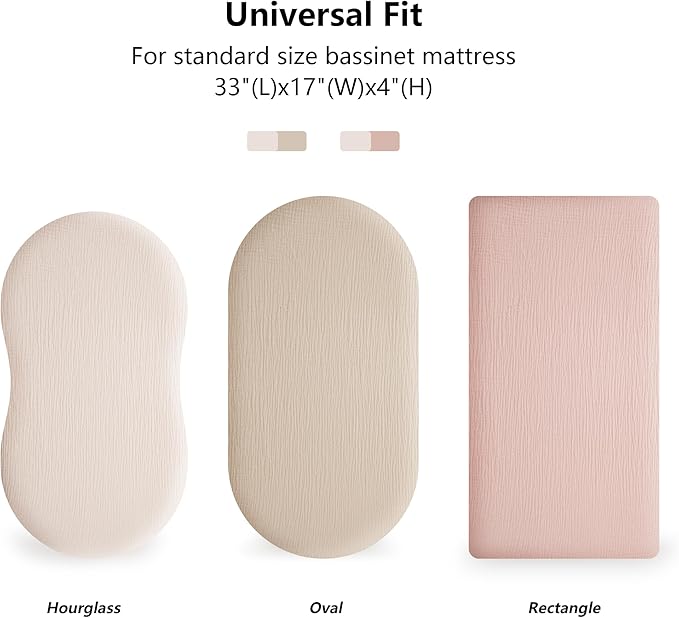 - Chic Versatility, Timeless Style: Elevate your nursery's style with our chic bassinet sheets. Universally compatible with various mattress shapes, such as oval bassinet, rectange bassinet, baby cradle, Moses basket, they effortlessly combine versatility with timeless elegance