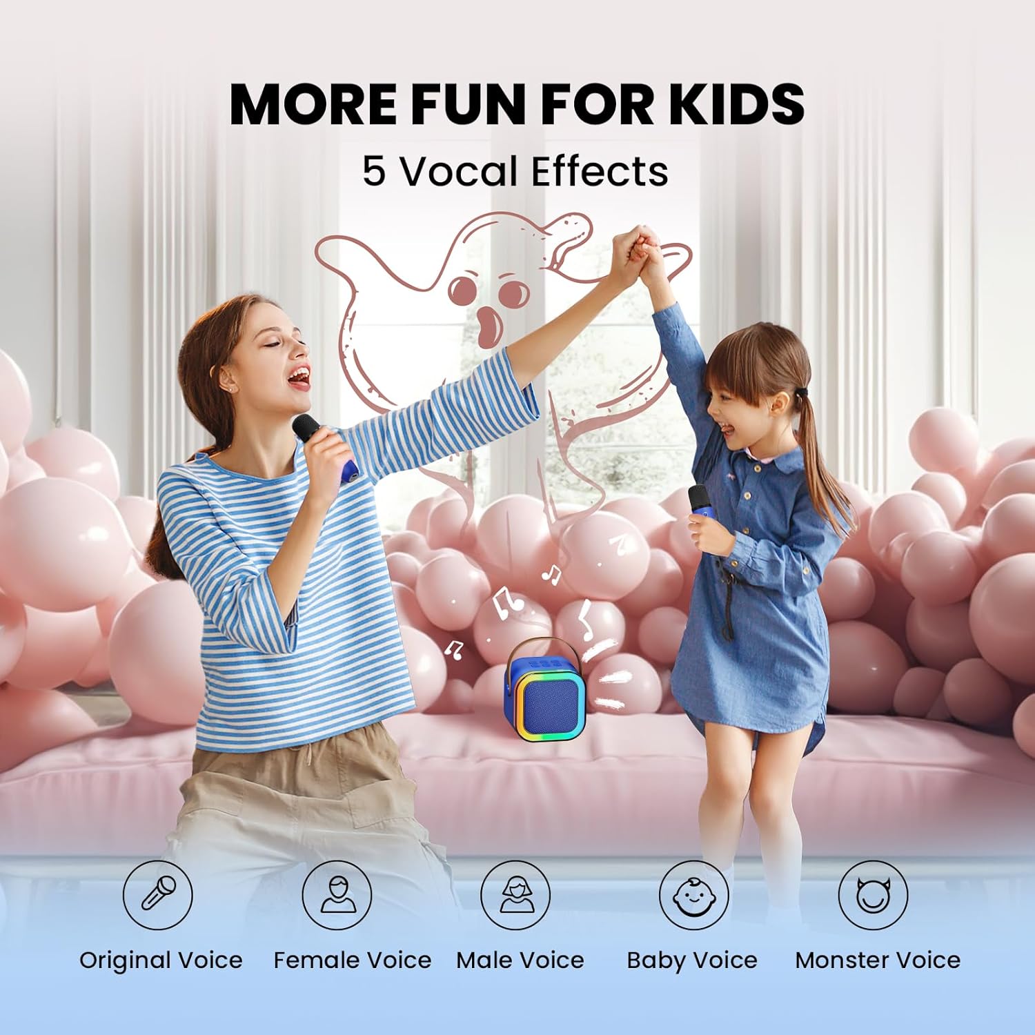 - Cute & Compact: User-friendly design ensures operation with ease, child-safe & durable materials are perfect for girls and boys aged 3-12 years old kids. Easy to carry, this portable karaoke machine doubles as a Bluetooth speaker for family dance parties, bedtime stories, or mom's workout sessions - entertainment for every occasion