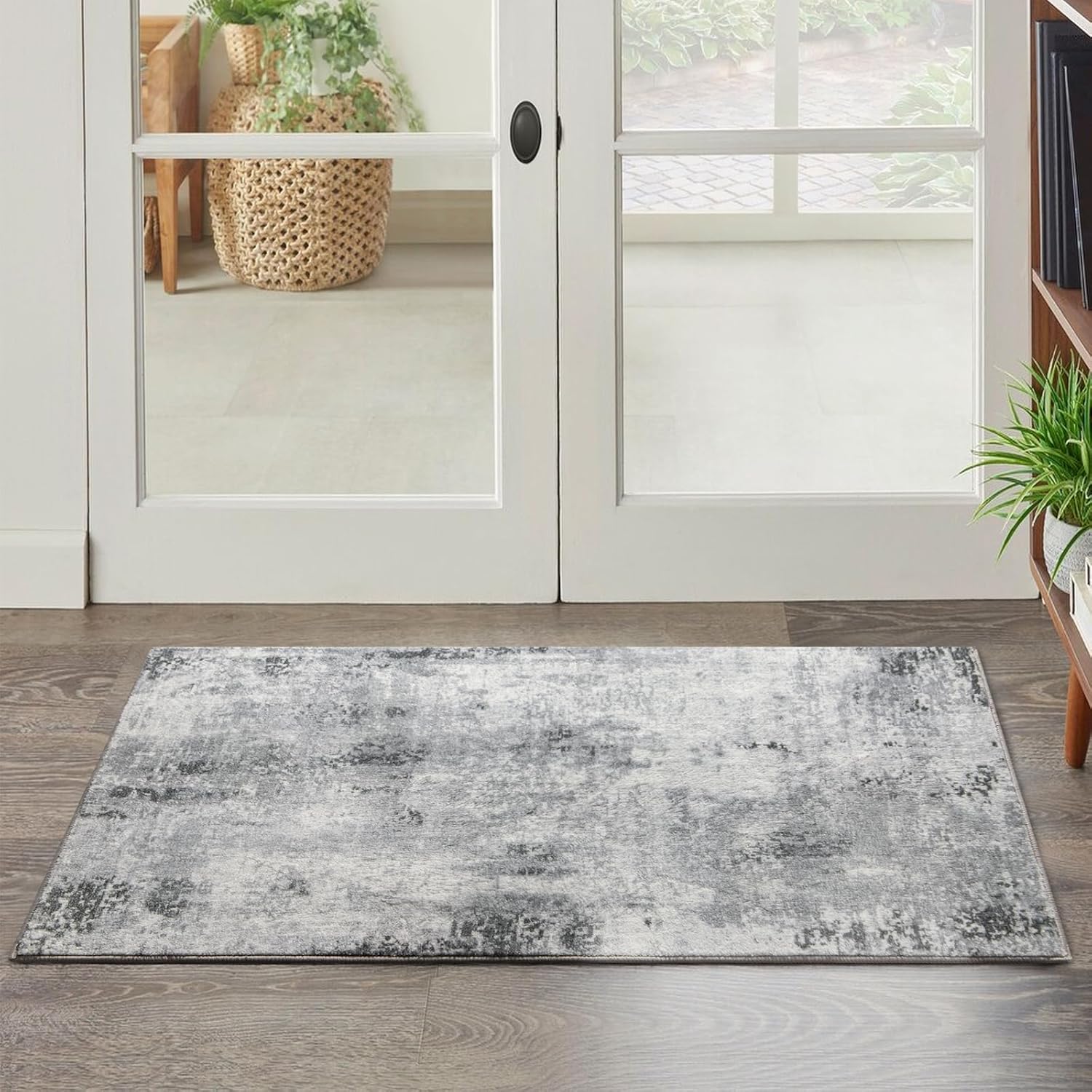 Entryway Rug 2x3 Grey Rug, Washable Abstract Small Rugs Non-Slip Low Pile Throw Rugs for Kitchen Floor, Front Door, Bedroom Bedside