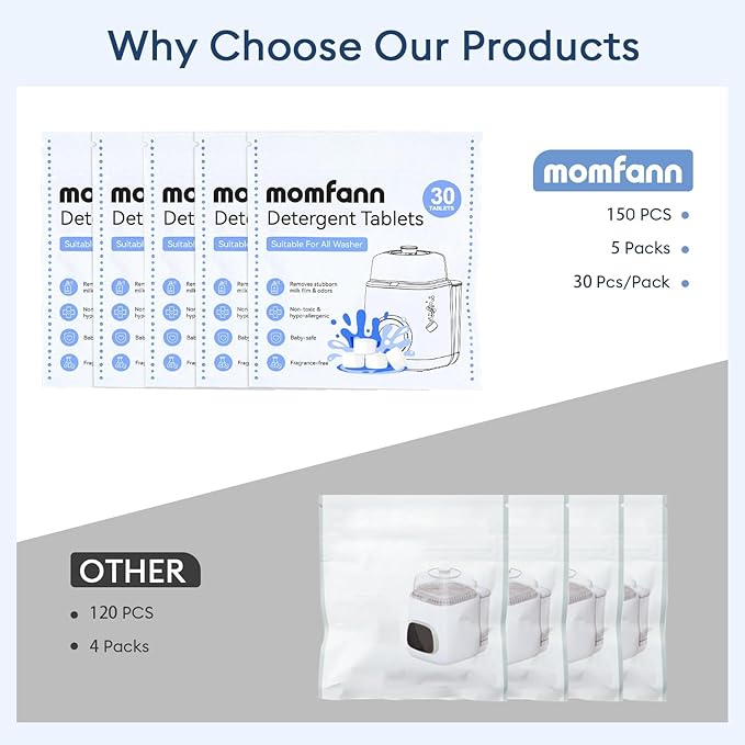 - 150 Tablets for Long-Lasting Use: 5 packs of 30 for continuous use; This value-packed supply means you'll always have the cleaning power you need, keeping your baby's bottles and accessories clean without frequent reordering