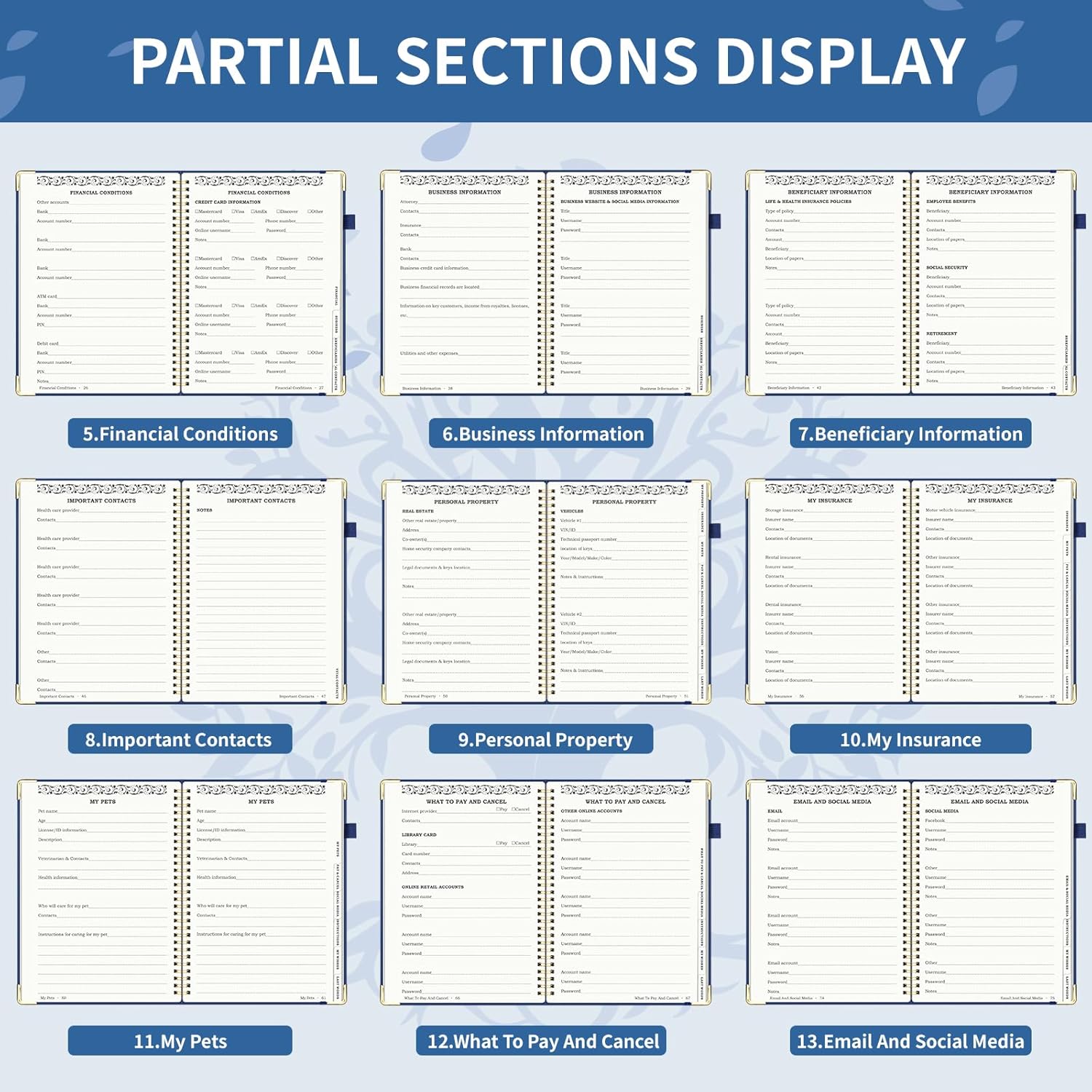 - Ideal for Seniors and Adults: Our estate planning organizer helps to document and clearly communicate lifelong aspirations. Ensure family can accurately execute wishes without overlooking any details, providing peace of mind.