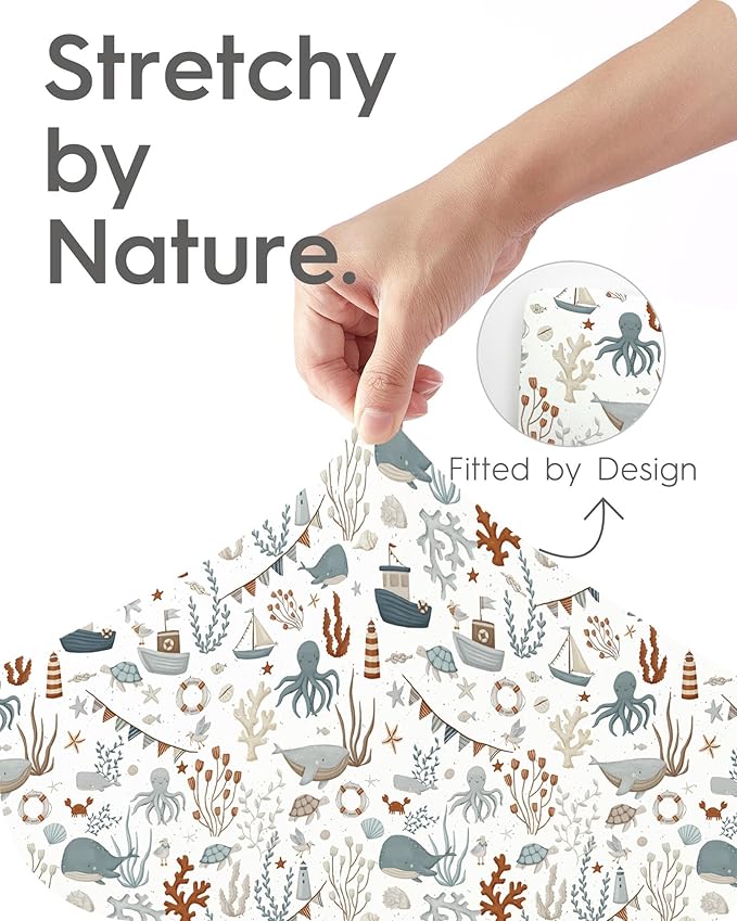 - 360° EFFORTLESSLY FITS: TotBasic fitted crib sheets effortlessly fit standard crib mattresses, measuring 28" x 52", with a flexible depth of up to 9" deep pockets. The premium elastic along the entire bottom edge ensures the sheet cover stays firmly and snugly in place, eliminating worries of it accidentally slipping off over your baby's head.