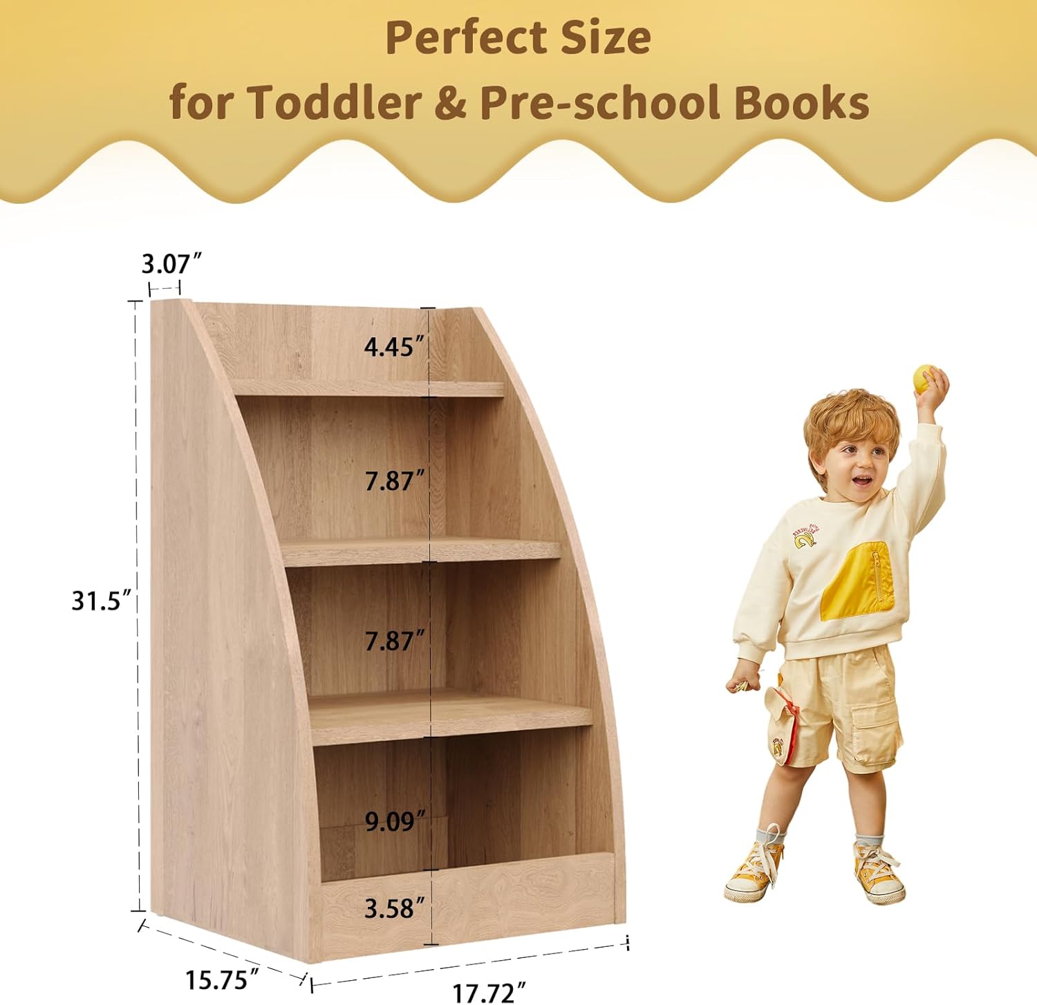 Kids Bookshelf,4 Tier Kids Book Shelf for Kids Rooms,Wood Children Bookcase,Baby Storage Book Rack,Toddler Bookshelf, Book and Toy Organizer,Book Display Shelf for Bedroom, Playroom, Nursery