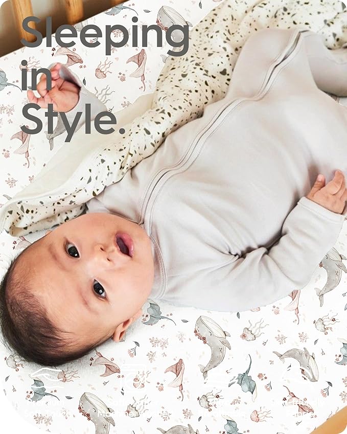 - FEEL THE SOFTNESS THAT SURPASSES ALL - that's what TotBasic pack n play sheets offer. Designed to mirror the tenderness of your loving hugs, our mini crib sheets are crafted from our patented fabric made of 100% Jersey Cotton. Incredibly soft and super stretchy, creating the perfect snuggly embrace for your baby's delicate skin. So soothing and comfortable, don't be surprised if your little one just hit the snooze button on playtime!