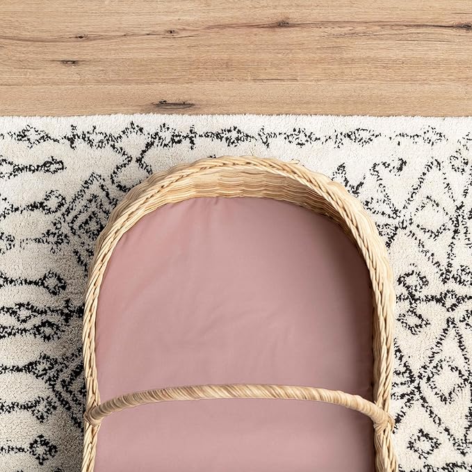 - 🌷 BEAUTIFUL DESIGN, UNBELIEVABLY SOFT MATERIAL – This beautiful custom pattern is printed on the most luxuriously premium organic cotton blend. Thicker elastic and deeper pockets ensure that our bassinet mattress sheets will NOT slip off the mattress pad. You’ll feel the soft, yet stretchy and silky material as you pull the sheets and snug, creating a safe and soothing space for your baby to sleep.