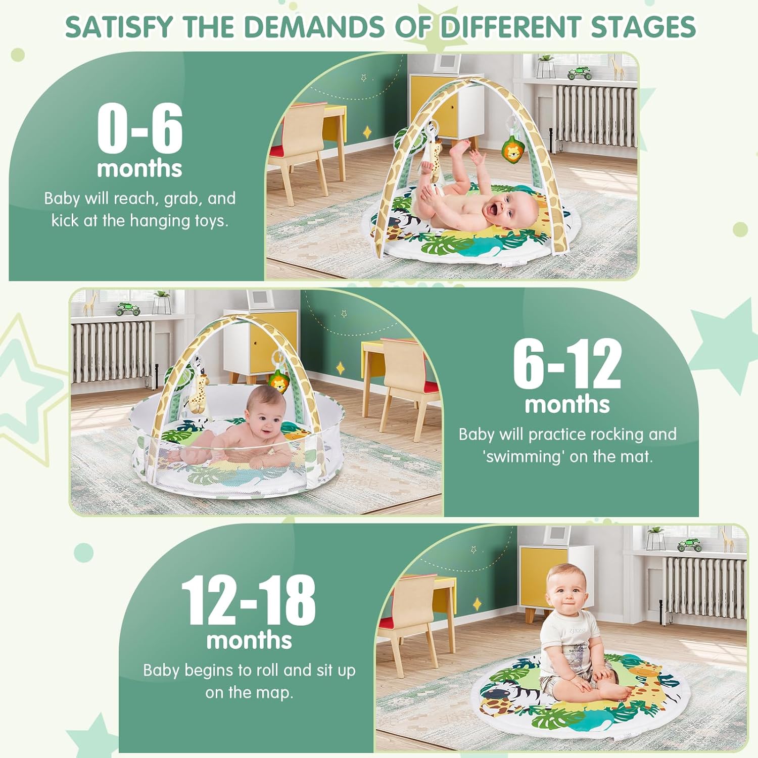 - [Ideal Baby Item]: Designed to encourage curiosity, sensory development, and hand-eye coordination, this baby activity gym is perfect for babies aged 0-18 months. It makes a thoughtful gift for baby showers, first birthdays, and bonding moments.