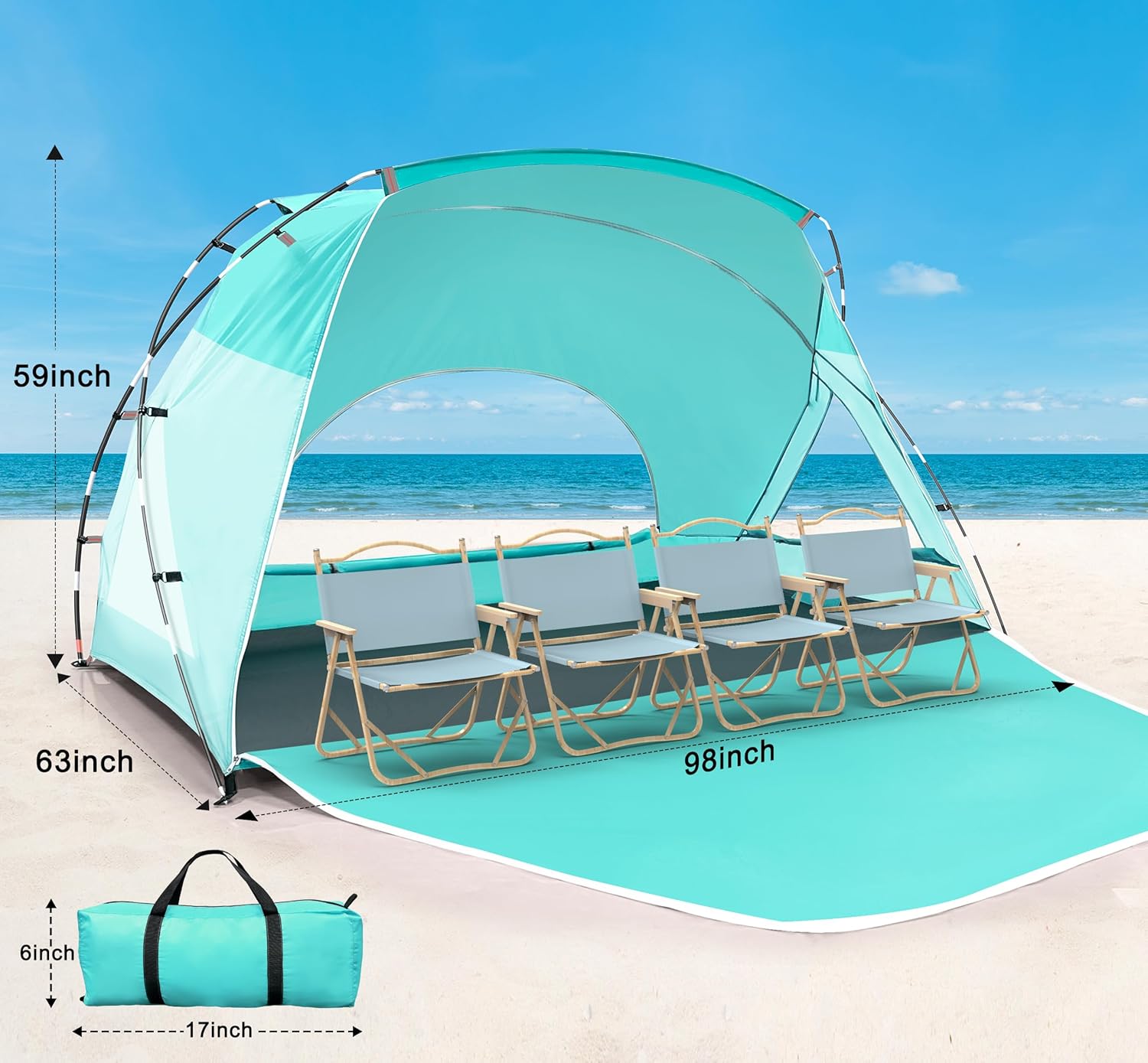 Beach Tent, Portable Sun Shelter for 2/3/4/6-8 Person with UPF 50+ UV Protection, Easy Setup Waterproof Beach Shade Canopy Cabana for Family Outdoor and Picnics, Fishing with Carrying Bag