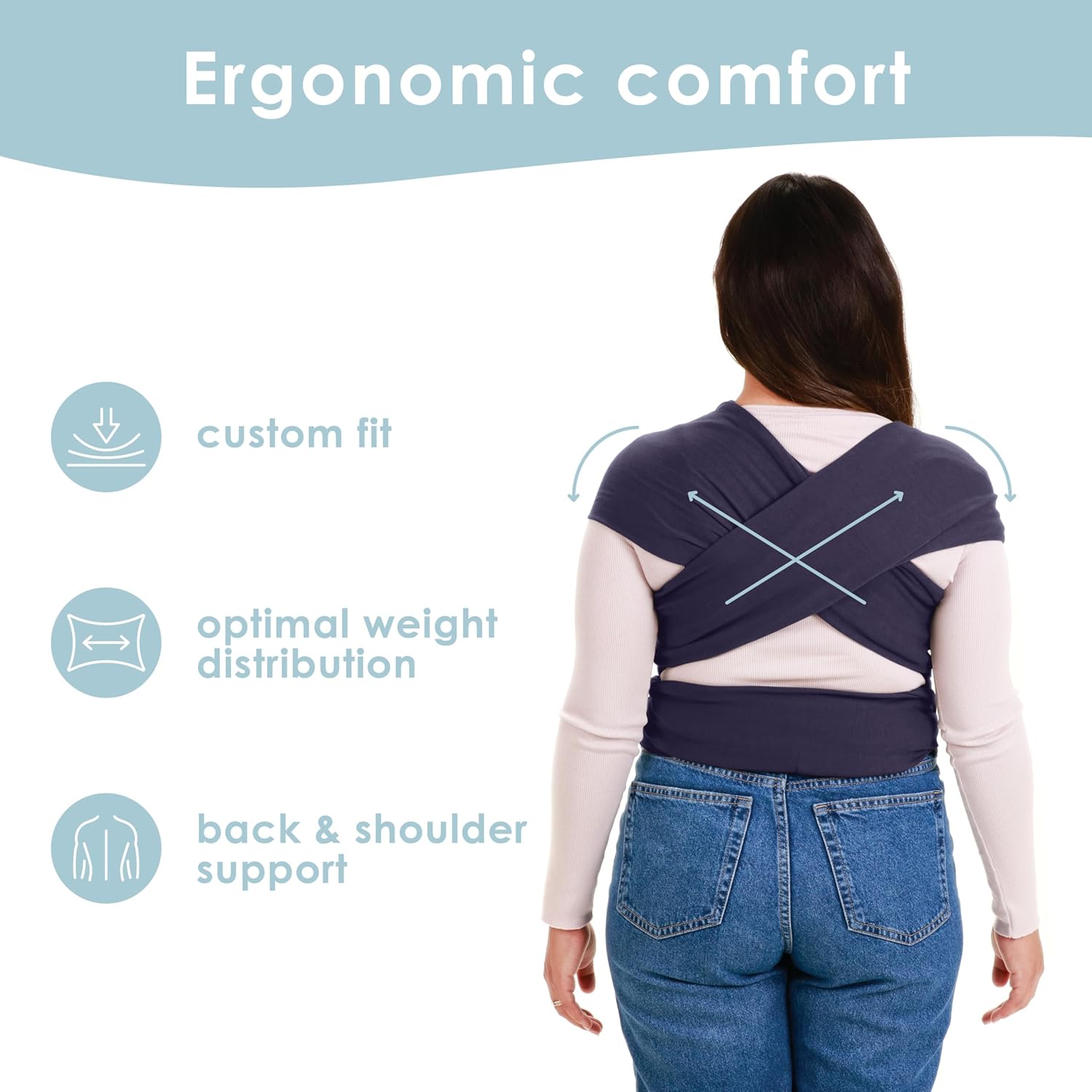 Sleepy Wrap Stretchy Ergonomic Baby Carrier Sling for Newborns to Toddlers - Hands-Free Lightweight Baby Wrap 7-35 lbs (Navy Blue)