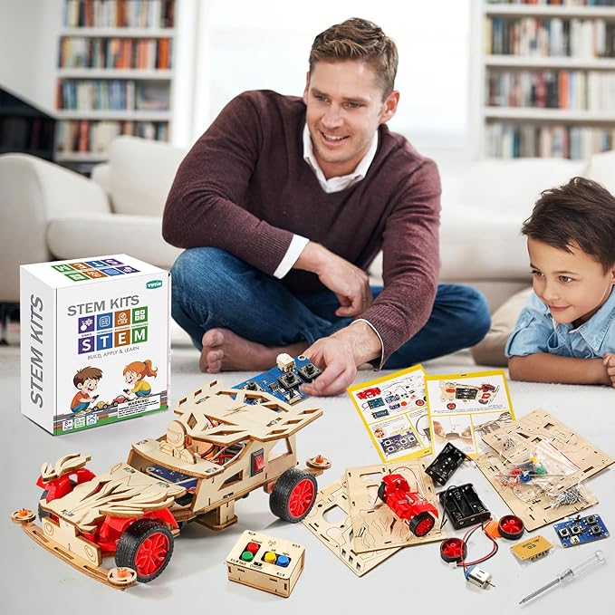 - STEM Toys for Boys age 8-12: This wood car model building kit captivates boys aged 8-10 by fostering exploration of scientific concepts, motor functions, and understanding of energy conversion. Serving as an STEM project for kids ages 8-12, blending education with entertainment. Assembly promotes hand-eye coordination and ignites imagination, enhancing both physical and intellectual development in a fun and creative way.
