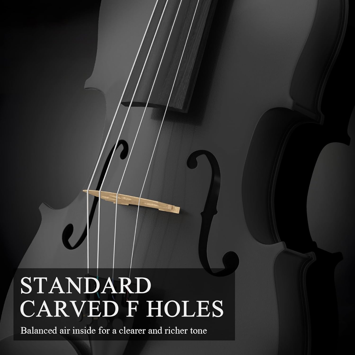 - 🎻 𝑬𝒏𝒉𝒂𝒏𝒄𝒆𝒅 𝑷𝒍𝒂𝒚𝒂𝒃𝒊𝒍𝒊𝒕𝒚 & 𝑻𝒐𝒏𝒆: This black violin 4/4 full set boasts an ergonomic design with smooth contours for comfortable play. The maple bridge with precise grooves ensures accurate tone transfer, while the Engelmann spruce soundpost adds warmth and sustain. Professionally adjusted bridge height paired with carefully selected strings makes pressing smoother, offering easy playability and a rich, expressive sound for violin beginners