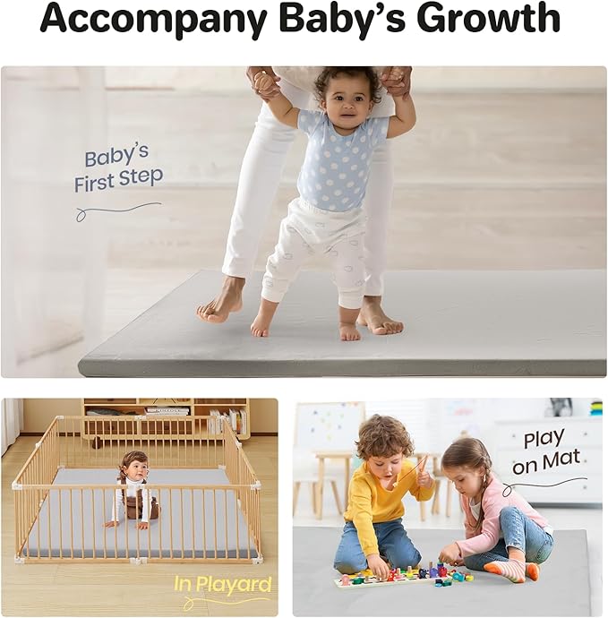 - 47x47”Play Mat Included - We designed this soft climbing set with baby play mat for versatile usage. It is suitable for 47x47 baby playpen or play yard. With the thickness of 1.85”, babies have enough space to crawl, roll, tummy time and learn to walk smoothly and securely. This toddler play mat also provides spacious space for parents, let parents and babies share happy bonding time together.