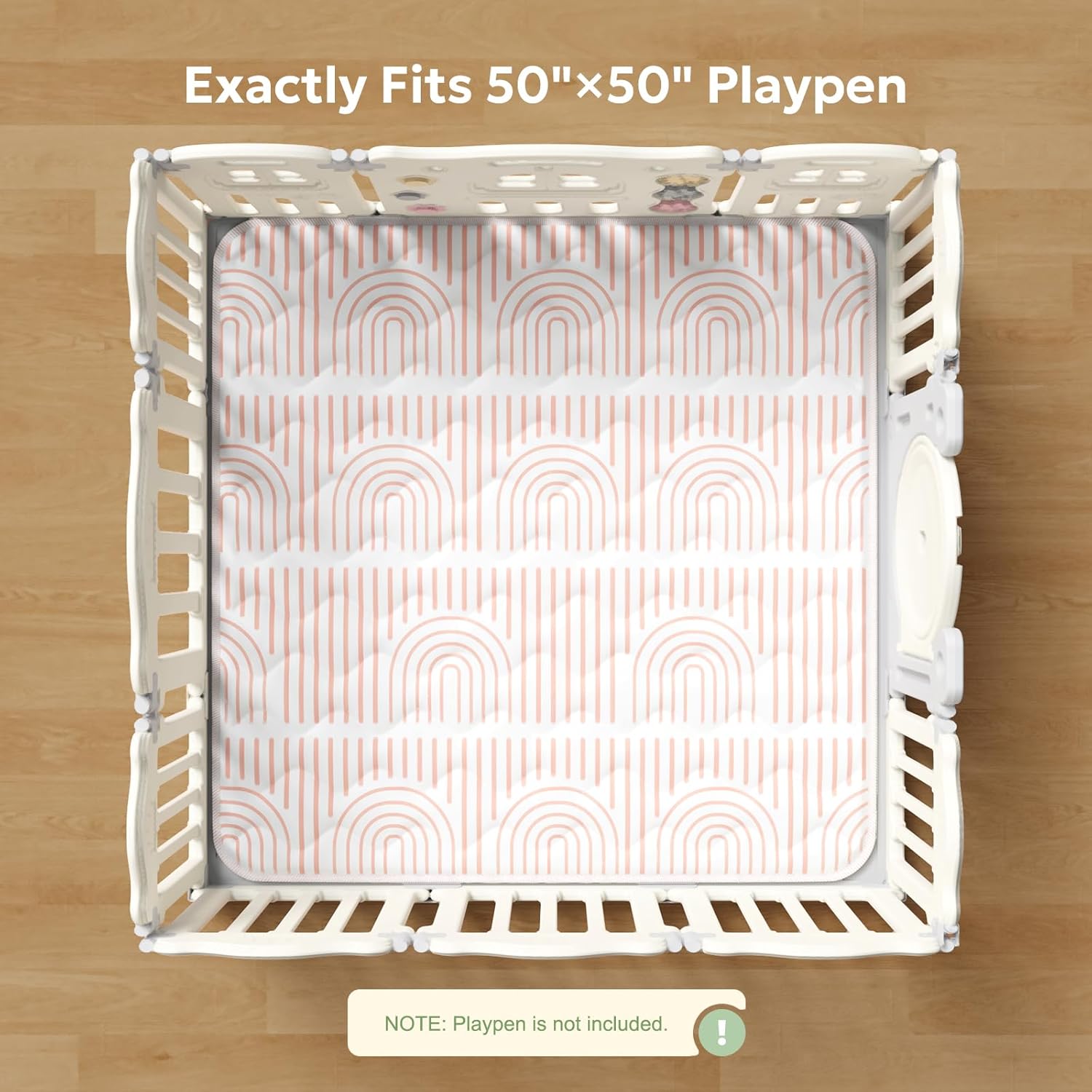 - EASY CLEANING & PORTABLE DESIGN: Parenting should be easy, and so should cleanup. With our baby play mat, simply wipe it clean with a mild detergent to remove dirt and stains, keeping your baby's play area fresh and hygienic. This 50x50 playpen mat is easy to fold and store, saving space when not in use. It's the ideal portable companion for your daily storage and on-the-go moments