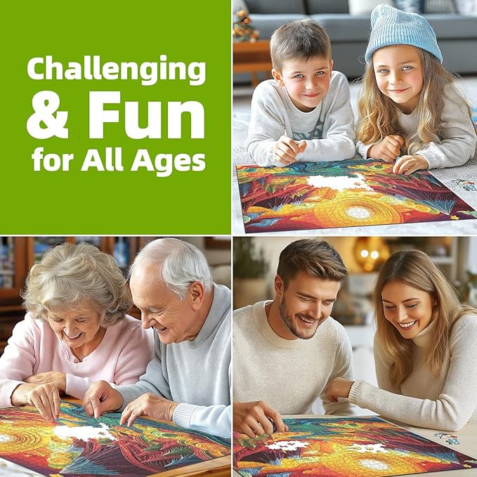 - 【Perfect for Family Fun】Ideal for family game nights or solo relaxation, this puzzle is suitable for both kids and adults, fostering quality time and teamwork as you conquer the intricate design together. Once completed, the finished puzzle measures 27.55 x 19.68 inches, making it a remarkable decorative piece that showcases your hard work and dedication, perfect for framing and displaying in your home.