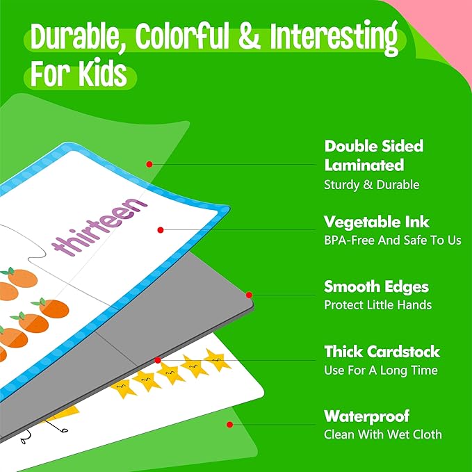 - High Quality: These puzzles are made from thick, sturdy cardboard, durable and long-lasting. They’re printed with safe, odorless ink and finished with smooth, rounded edges, making them safe for little hands. The high-quality materials ensure that the pieces stay vibrant and bright over time, even with daily use.