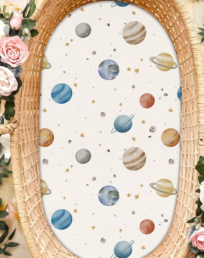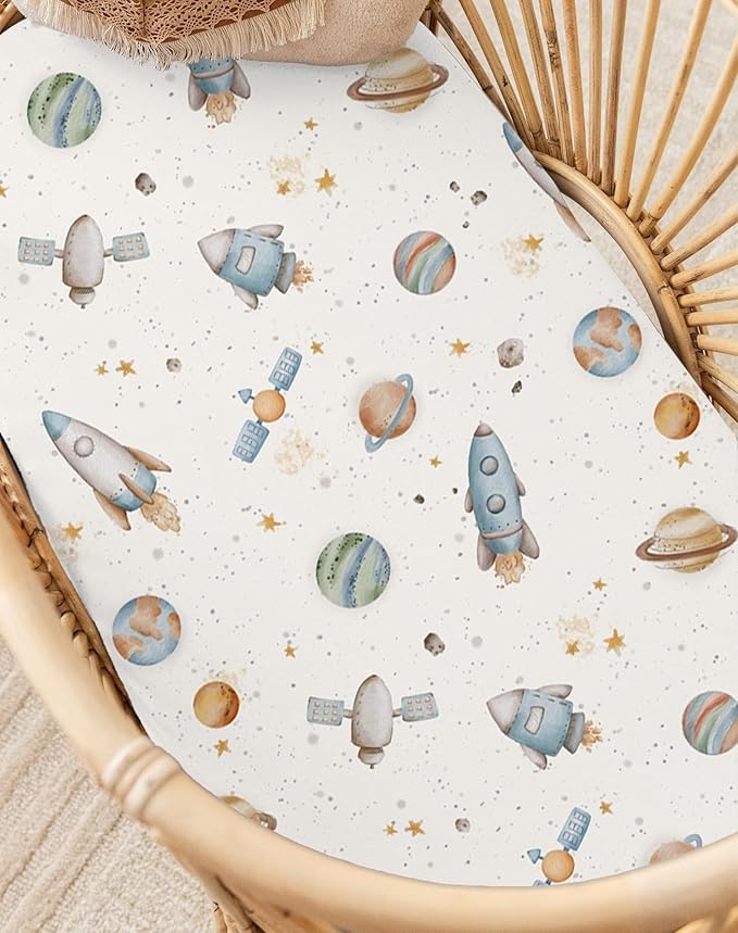 Bassinet Sheets for Baby Girls Boys 2 Pack, Fitted Baby Mattress Sheet for Rectangle, Oval, Hourglass Bassinet Mattress, Breathable Cozy & Universal Fit (Stellar Adventure)