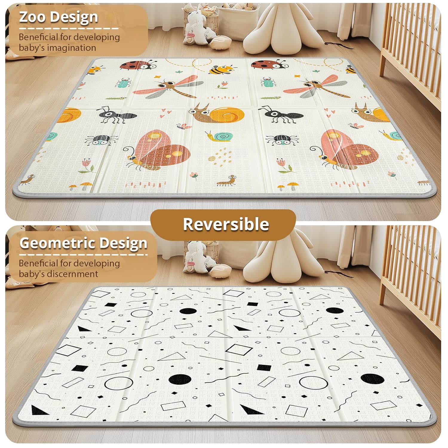 - FOLDABLE & EASY TO CARRY: The baby foam playmat is easy to carry and store and has a foldable design. It comes with a carry bag, and the baby mat for the floor can be quickly folded into a compact size into a bag for outdoor use.