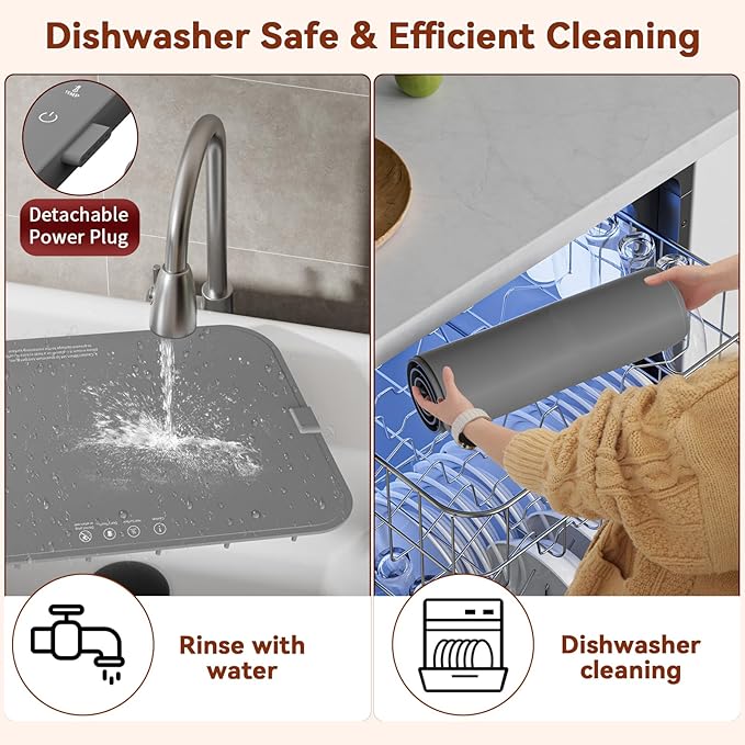 - Washable Food Warming Mat for Countertop: Crafted from flexible food-grade silicone, this warming mat is not only durable but also 100% waterproof. The detachable plug allows for effortless cleaning—simply wipe it down, rinse it, or toss it in the dishwasher. No more hassle, just pure convenience. Plus, its foldable design makes it easy to store, saving valuable space in your kitchen or dining area