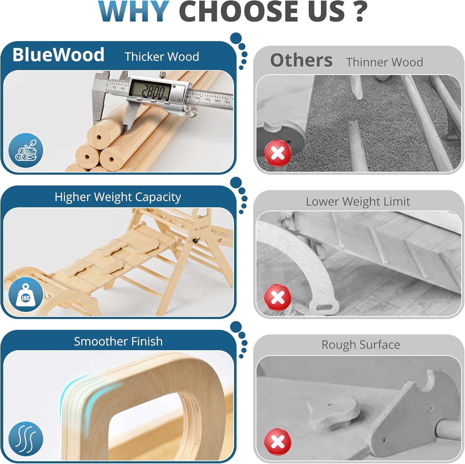 - Extra-Thick Design for Superior Stability: The extra-thick wood design supports up to 150 lbs, ensuring stability and safety. Its sturdy construction makes it durable for years of active play