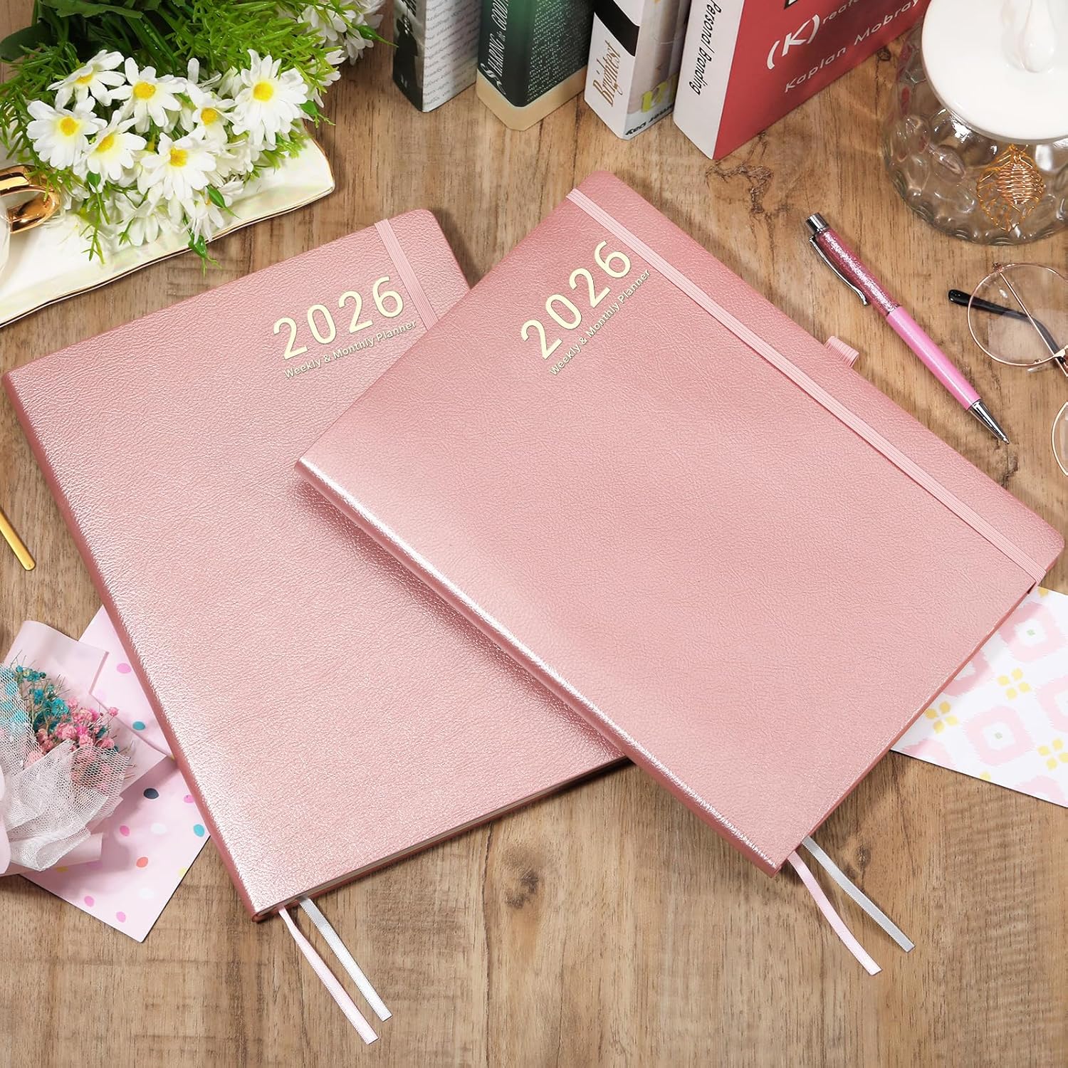 2026 Planner - JAN 2026 - DEC 2026, Planners 2026, Planner Weekly and Monthly, Leather Cover Calendar Planers with Thick Paper, Back Pocket with Notes Pages, Pink (8.5" x 11")