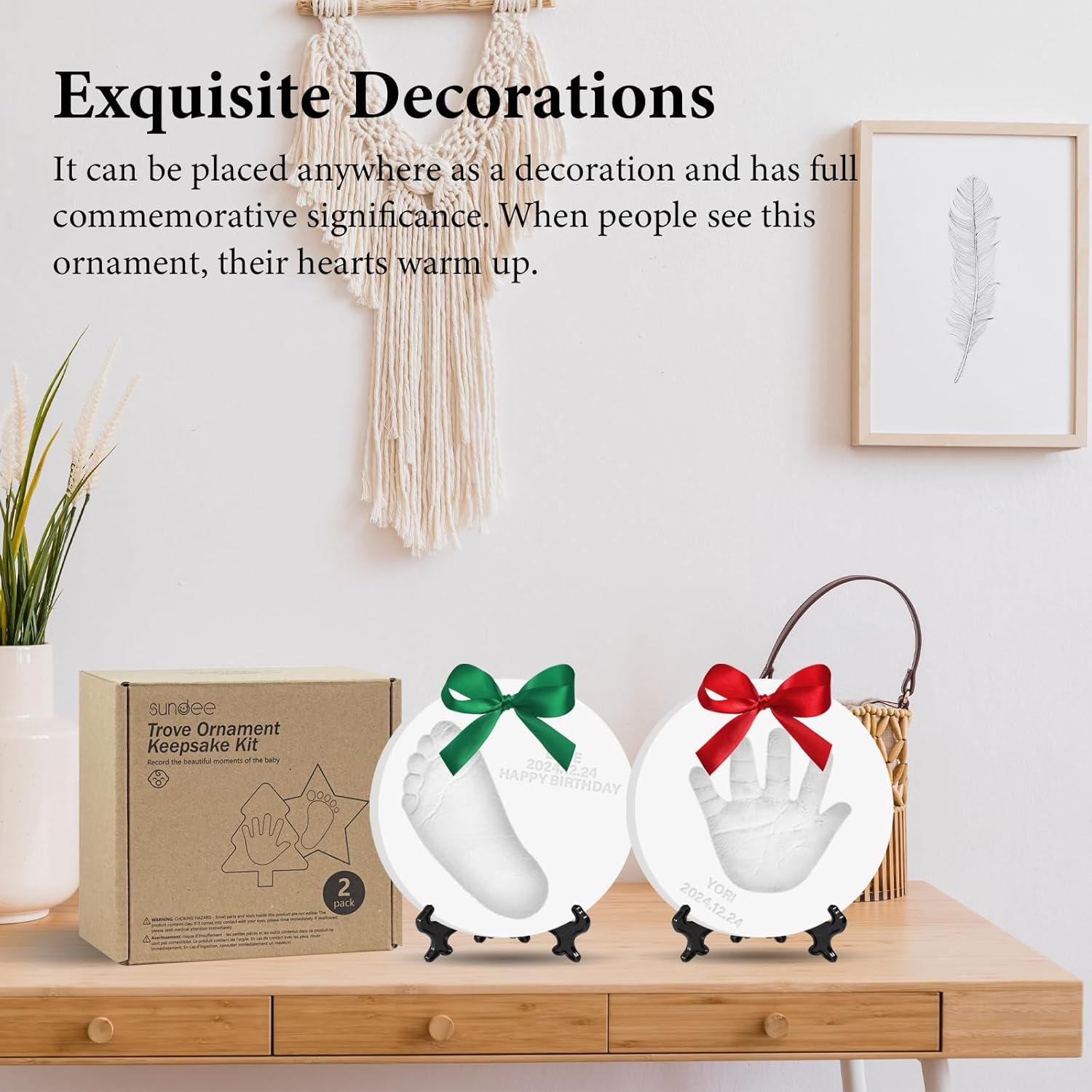 Baby Hand & Footprint Keepsake Kit - Personalized Handprint Footprint Ornament for Newborn Babies, New Mom Gifts, Baby Shower & Registry, Nursery Picture Frame, Pet Paw Print Ornament