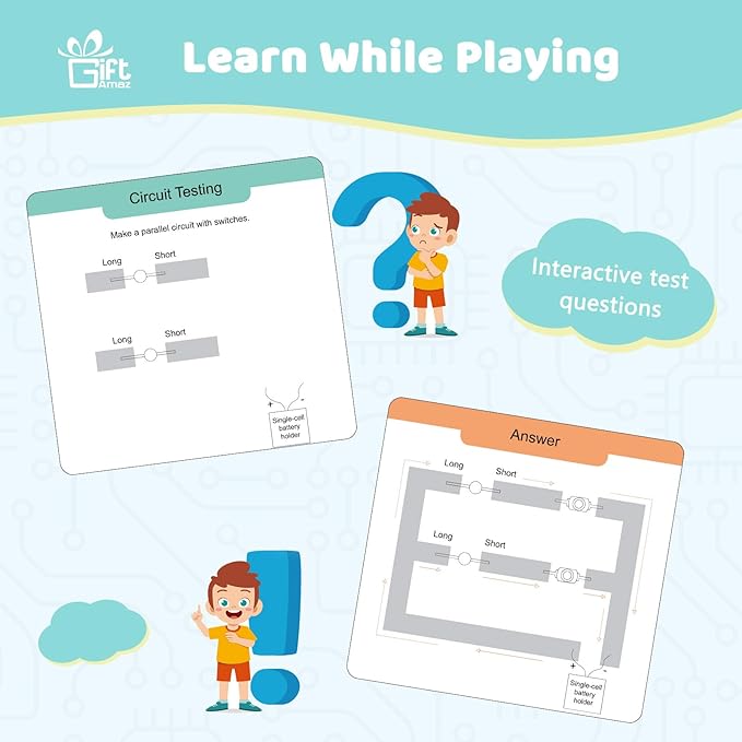 - Science Learning Through Play: Make learning a joyful experience! Each card in the kit features a different circuit concept, from series and parallel circuits to switches. Come with clear instructions and engaging questions, great for kids aged 8 and above science learning beginners to explore electronic components and to understand the fundamental electrical principles