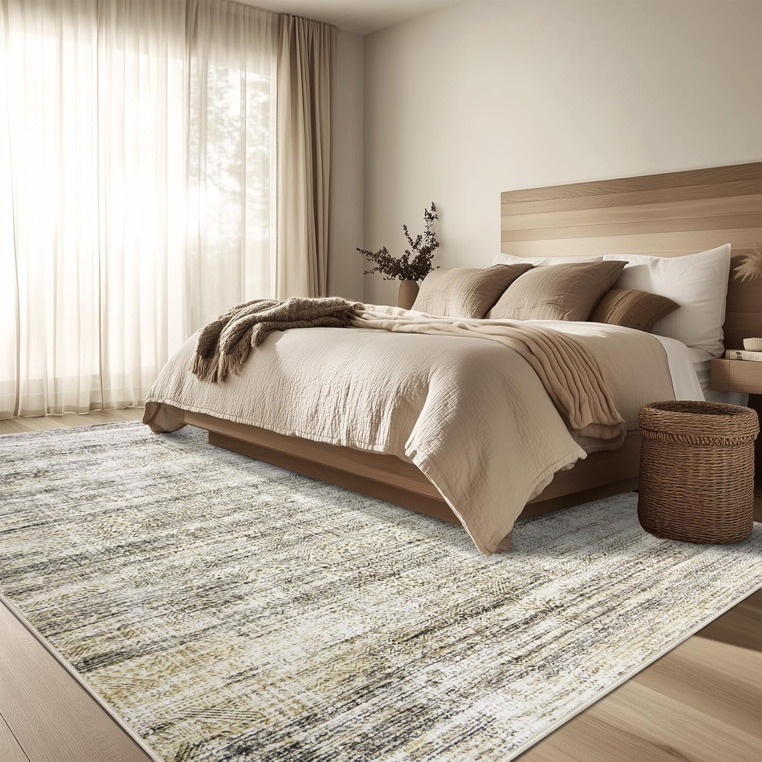 5x7 Area Rug Living Room Rugs - Washable Rug Large Modern Abstract Soft Thin Carpets Indoor Floor No Slip Vintage Carpet for Bedroom Under Dining Table Nursery Home Office Decor Nature
