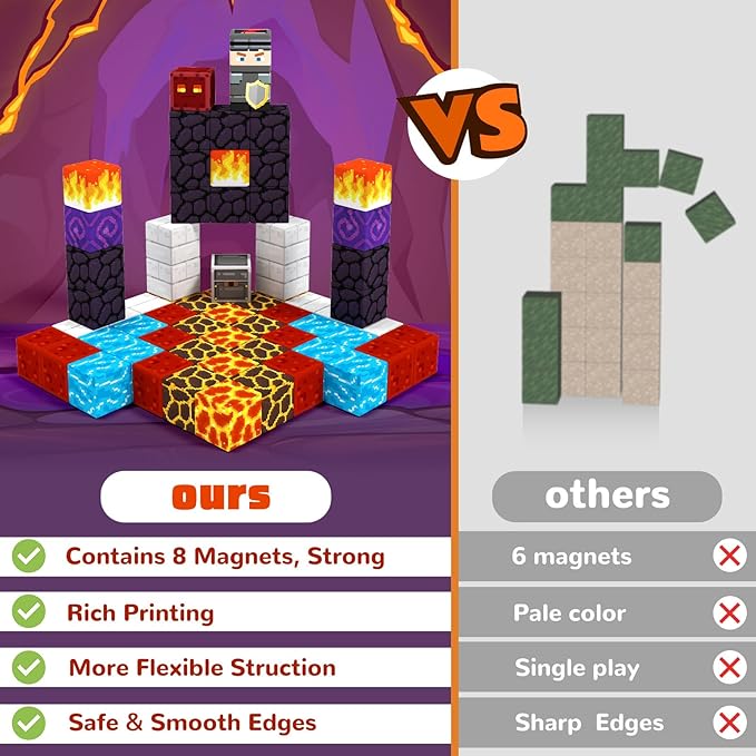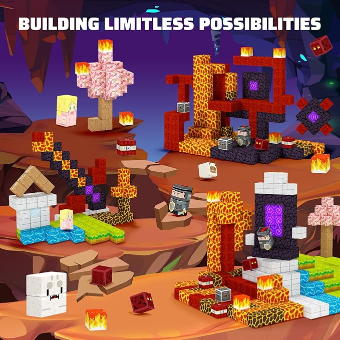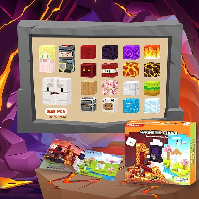 - 【Exciting Gateway Adventure】 Unleash creativity with our 100-piece 0.8inch magnetic blocks to build magical worlds! Explore two realms: a cherry blossom forest with grasslands, and a mystical cave of lava rivers and monsters. With our magnetic block, kids can construct their adventure world, From the depths of shadowy caves to enchanted forests where brave knights and elegant princesses await - Get ready for an unforgettable journey!