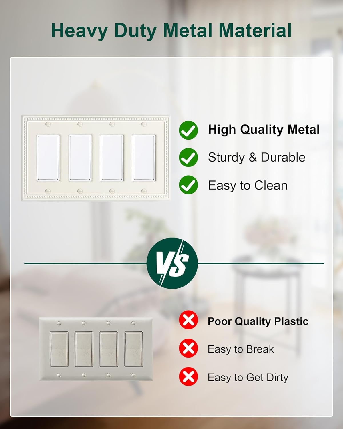 2-Pack Quad Decorator Outlet Cover Plate, Light Almond Pearls Decorative Switch Plates Covers, Metal Wall Plates for Electrical Outlets, Receptacle, GFCI Outlet, Dimmer Switch