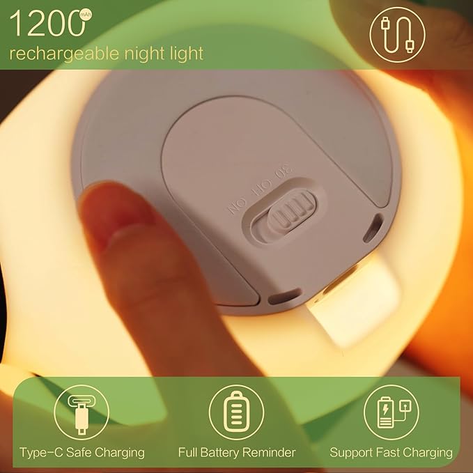- 3 Levels Dimmable & 30mins Timmer: With 3 brightness settings controlled by a simple tap on the animal's bottom, plus a convenient 30-minute auto shut-off feature, this night light provides the perfect amount of soft, warm lighting for a cozy atmosphere. With a built-in 1200mAh rechargeable battery, this panda lamp can run for up to 6-8 hours on a single charge, making it portable and wireless for use during nighttime feedings, camping trips, or as an emergency light.