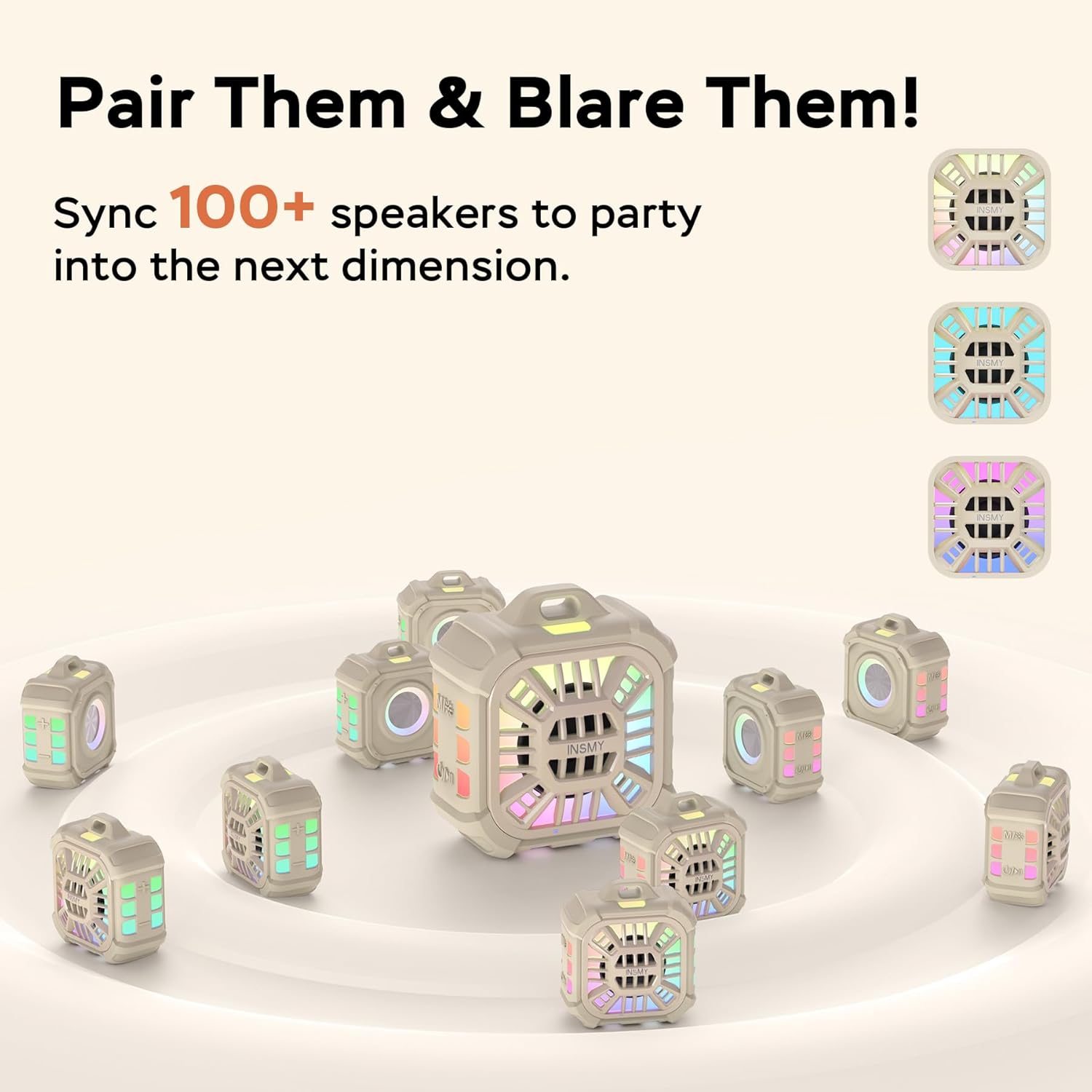 INSMY Shower Bluetooth Speaker, IP67 Waterproof Portable Small Multi Sync 100+ Speakers, Big Volume Booming Bass, 24H Playtime/Floatable/RGB Lights for Outdoor/Kayak/Beach/Golf (Khaki)