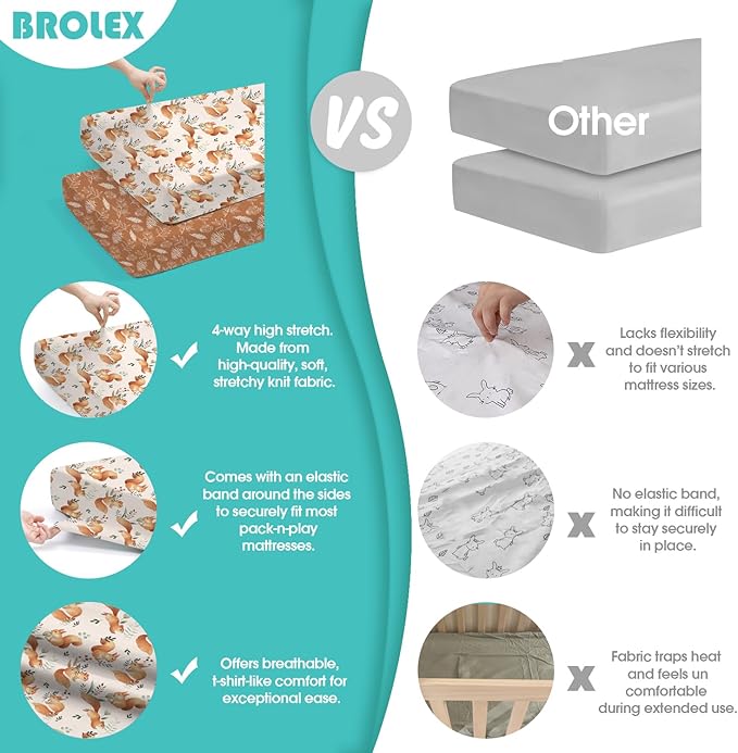 - BREATHABLE MINI CRIB SHEETS FOR NEWBORN & INFANT: Crafted with breathable materials, these Pack and Play sheets help regulate your baby's temperature, ensuring a comfortable sleep all night long. Perfect for moms and parents who want a safe and eco-friendly option for their baby boy or girl, whether in the nursery, during travel, or at daycare.