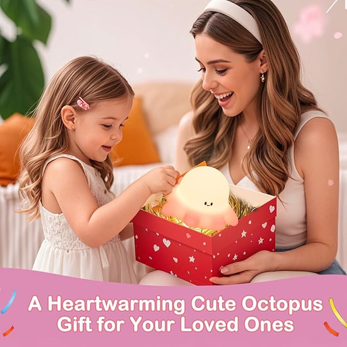 - Adorable Octopus Design: Kids love the cute cartoon octopus shape! The friendly glow creates a calming atmosphere, making bedtime routines fun, comforting, and stress-free.