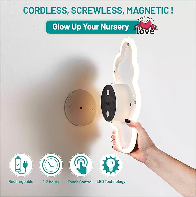 - TOOL-FREE INSTALLATION : This night light for kids has a magnetic mount for easy setup, adding ambient lighting to baby nursery decor. It’s perfect as a wall decor for bedroom, girls night light.
