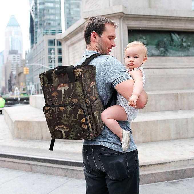 Diaper Bag Backpack Retro Mushroom Forest Travel Diaper Bags for Women, 10L Functional Baby Changing Bag with Insulted Pockets, Stroller Straps