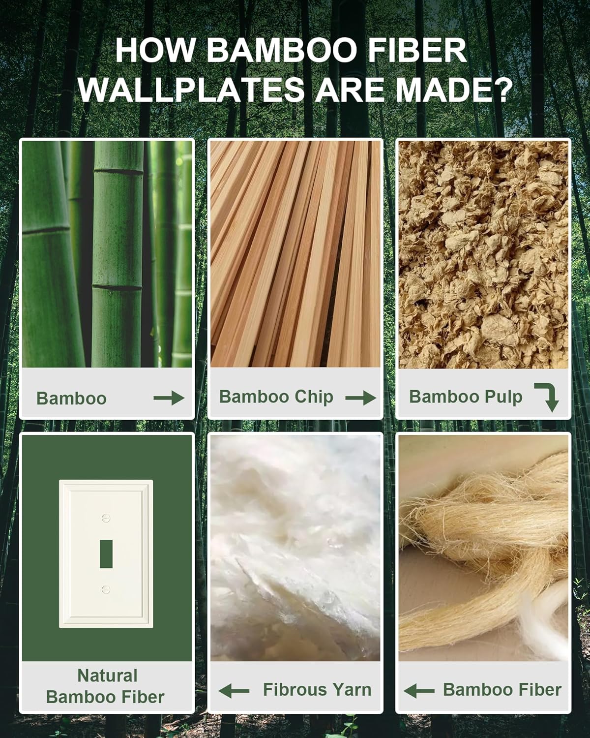 4-Pack Single Toggle Light Switch Covers Wall Plate, Light Almond Decorative Switch Plate Covers, 1 Gang Natural Bamboo Fiber Wall Plate, Corrosion Resistant