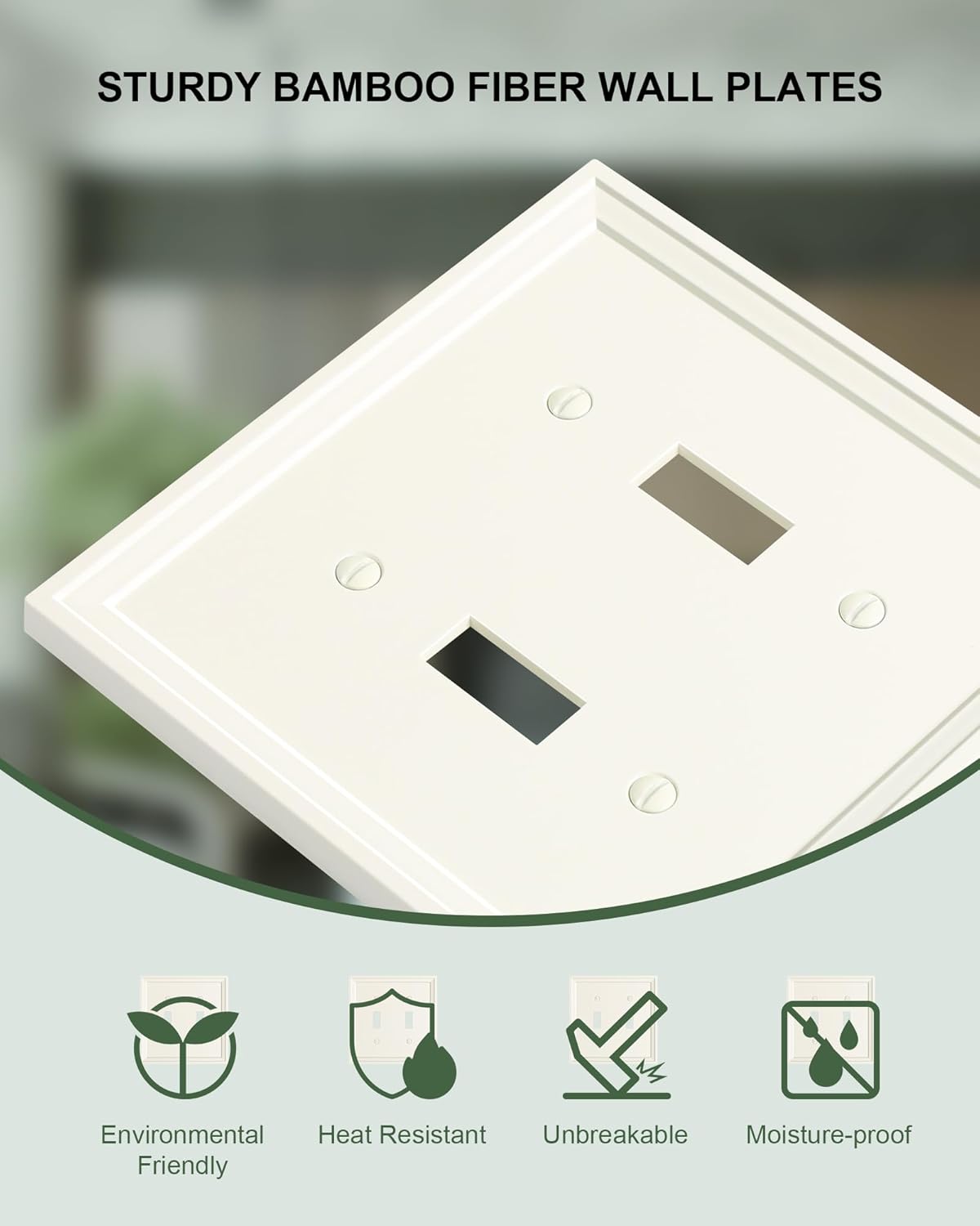 2-Pack Double Toggle Light Switch Cover Plate, Light Almond Decorative Dual Switch Plate Covers, Natural Bamboo Fiber 2 Gang Wall Plate, Corrosion Resistant