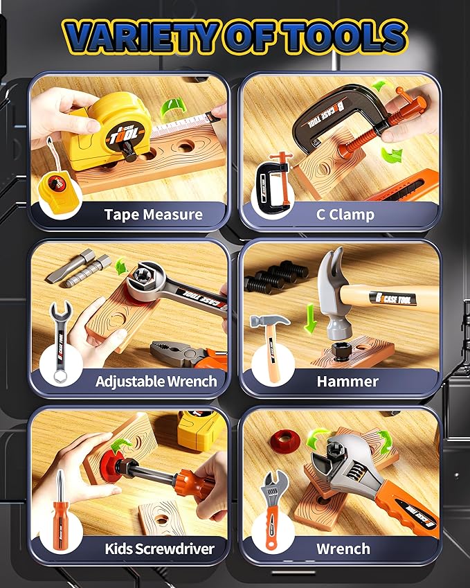 - 【Durable and safe material】Made of high-quality ABS material, safe and environmentally friendly, harmless to the human body. Meets US toy ASTM. All tools are designed for children, with rounded edges and smooth surfaces.