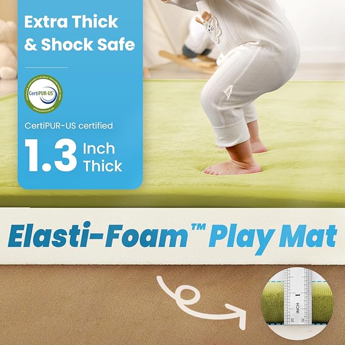 - Extra-Thick Cushioning for Impact Absorption: Featuring 1.3-inch premium memory foam,this baby floor bed mat offers superior shock absorption—softer than standard mats—to reduce bumps and injuries when toddlers roll or crawl off surfaces.