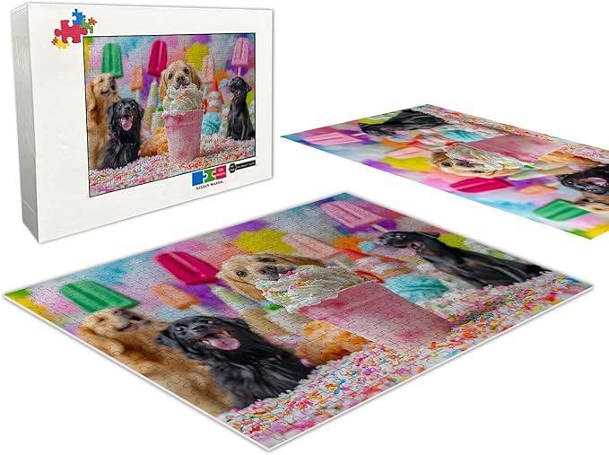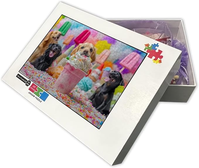 120 Pieces Wooden Jigsaw Puzzle, Cute Ice Cream Puppy Decorative Wall Art Gifts, Active Mind Puzzle, Fun and Challenging at The Same Time