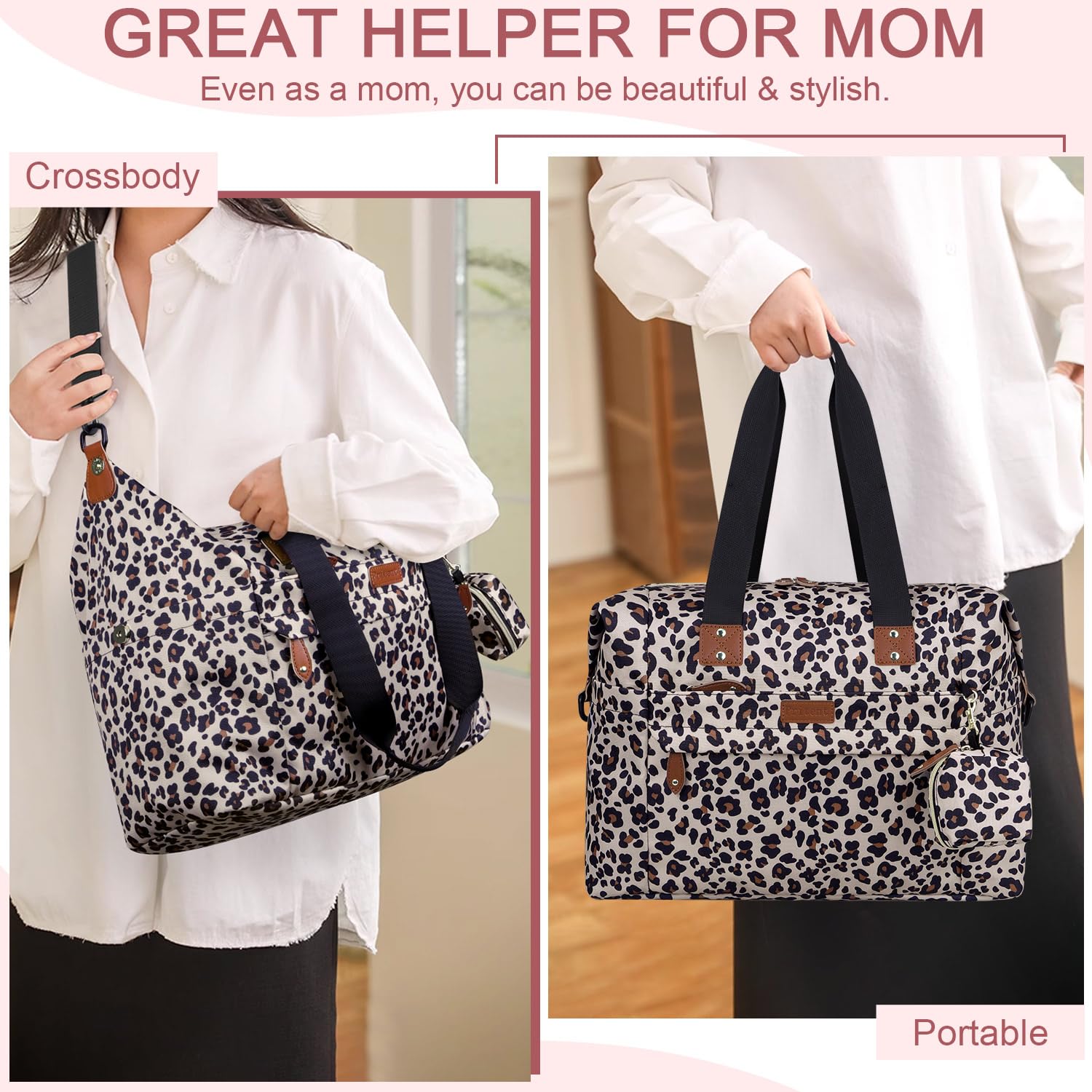 Diaper Bag Tote - Diaper Baby Bags with Pacifier Case, Shoulder Straps, Stroller Clips, Waterproof Large Mommy Maternity Travel Baby Bag for Mom and Dad, Leopard, Medium