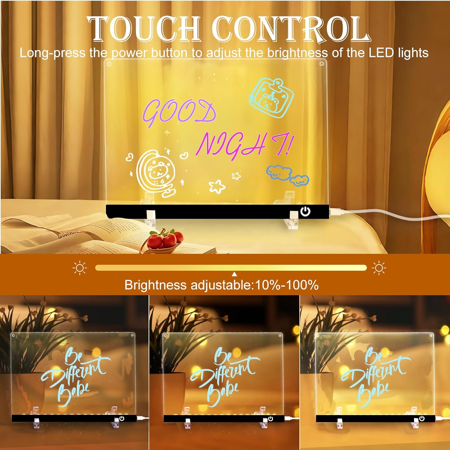 - Writable Night Light for Personalized Messages: Equipped with a light strip containing32 built-in LED lights, this board doubles as a practical night light. The gentle illumination allows it to function as a message board where you can leave heartfelt notes for your little ones or use as a soothing night lamp. This feature ensures that your messages are not only visible but also create a warm, comforting glow that fills the room with a sense of connection and care.