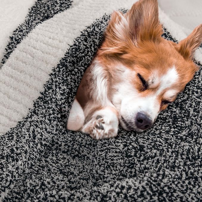 NEXHOME PRO Stripe Cozy Blanket Twin, Knit Fuzzy Throw Blanket for Couch Bed Sofa Picnic, Ultra Soft Blankets for Women Gifts Black 60 x 80 inches
