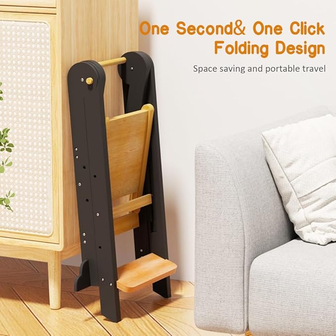 Toddler Tower, Foldable Step Stool for Toddlers, Toddler Kitchen Stool Helper with 3 Adjustable Height Safty Rail and Anti-Tip Structure, Learning Tower for Toddlers Baby Kids