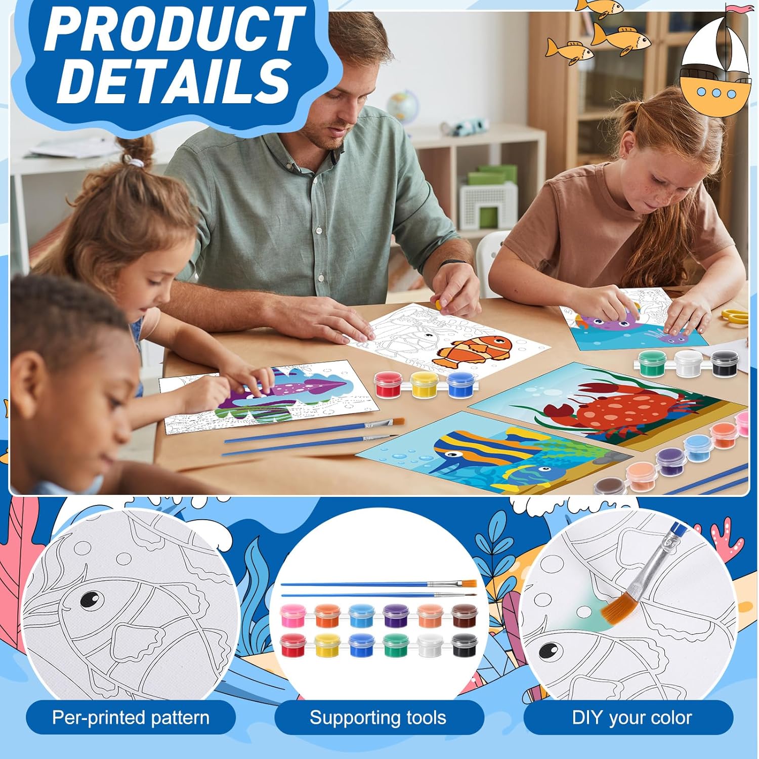 - 10 Pre Printed Canvases: 10 kinds of ocean animal patterns are engraved on the pre drawn board; Include fish, turtle, crab, dolphin, whale, octopus and other patterns, the size of: 7 x 5 x 0.1inch/18 x 13 x 0.3cm, cute and easy, you can use the provided paint to color according to your own aesthetics, improve your painting creativity in the process, and also reduce stress and relieve anxiety