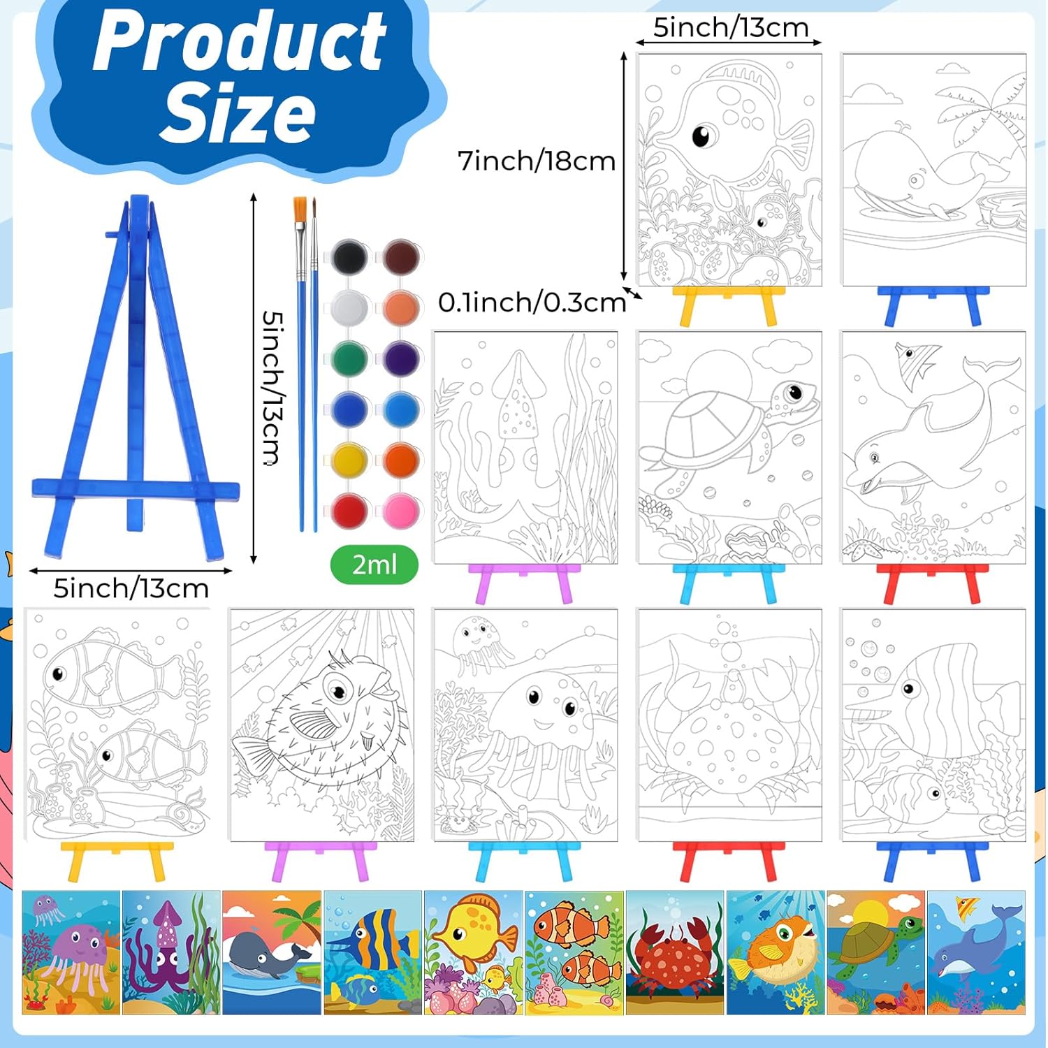 Blosssound 10 Set Pre Printed Canvas Pre Drawn Canvas Painting with Easel Kits 5" x 7" Outline Painting Panels for Beginners, DIY Craft Project, Party Favor, Home Decors(Ocean)