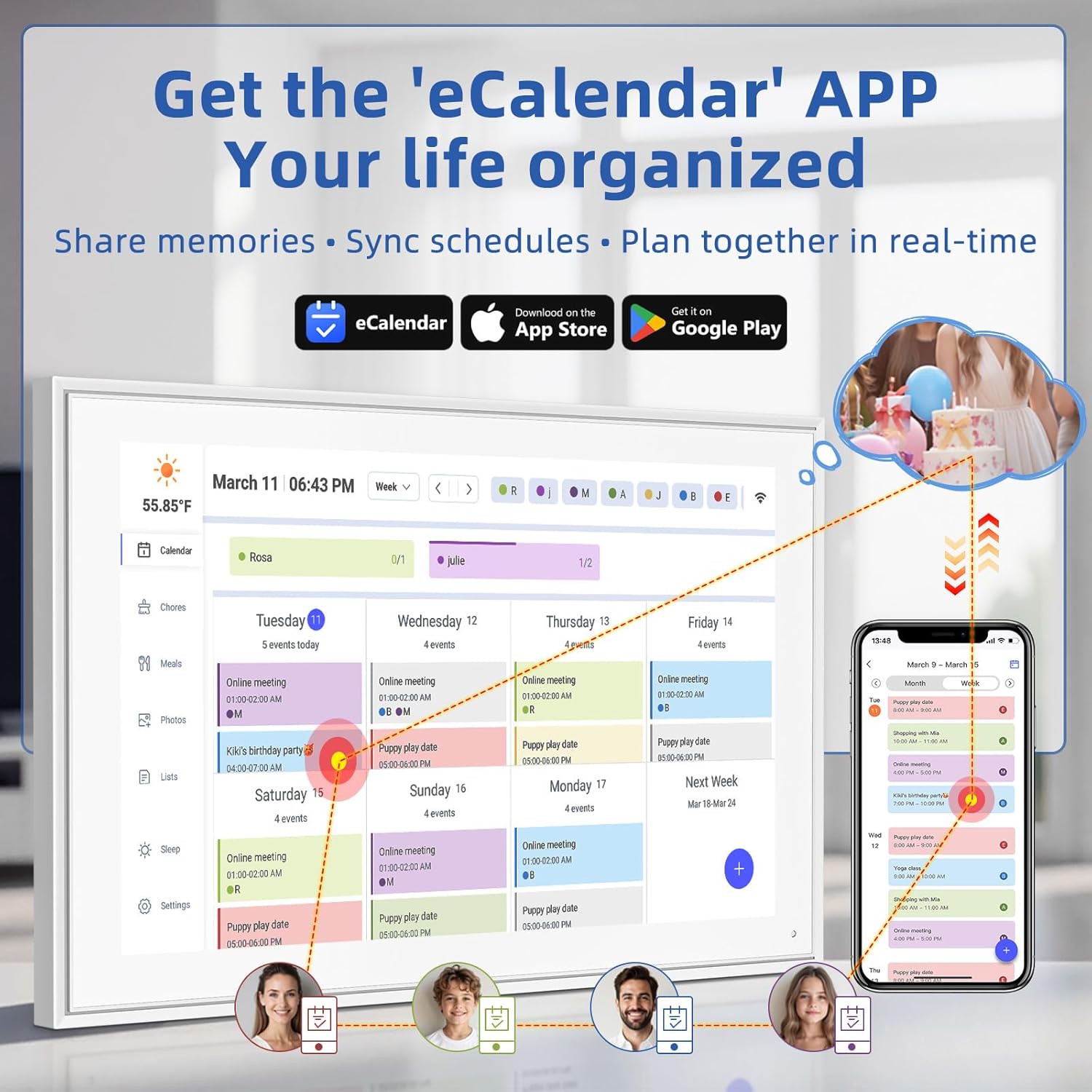 - ✅Seamless Cross-Device Sync: Sync schedules via Bluetooth/WiFi with iOS, Android, Windows, or macOS. Ideal for students, professionals, and families to stay aligned.Compatible with icloud Calendar, Google Calendar, Outlook Calendar, Cozi, and Yahoo, perfect gift for women who need organization across devices