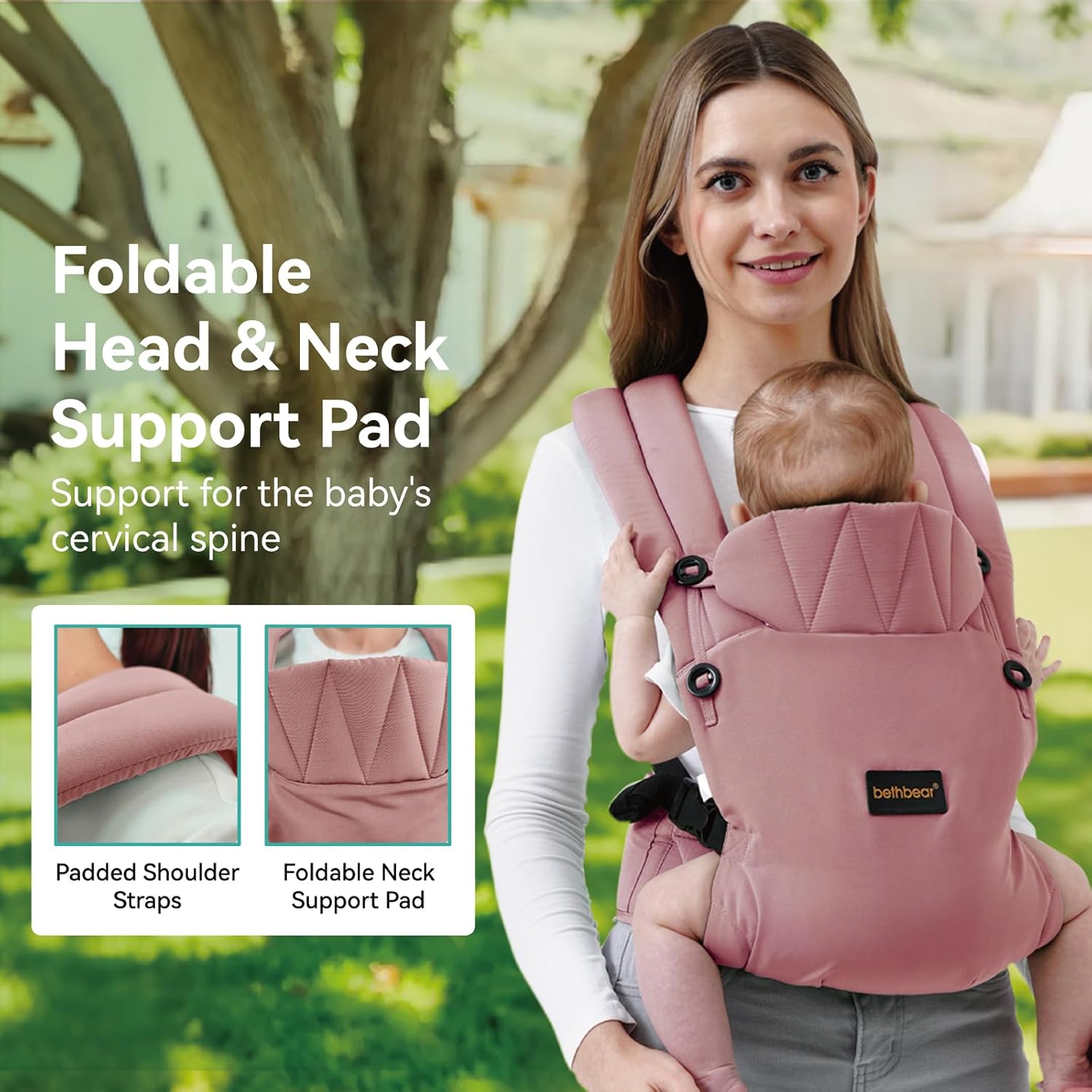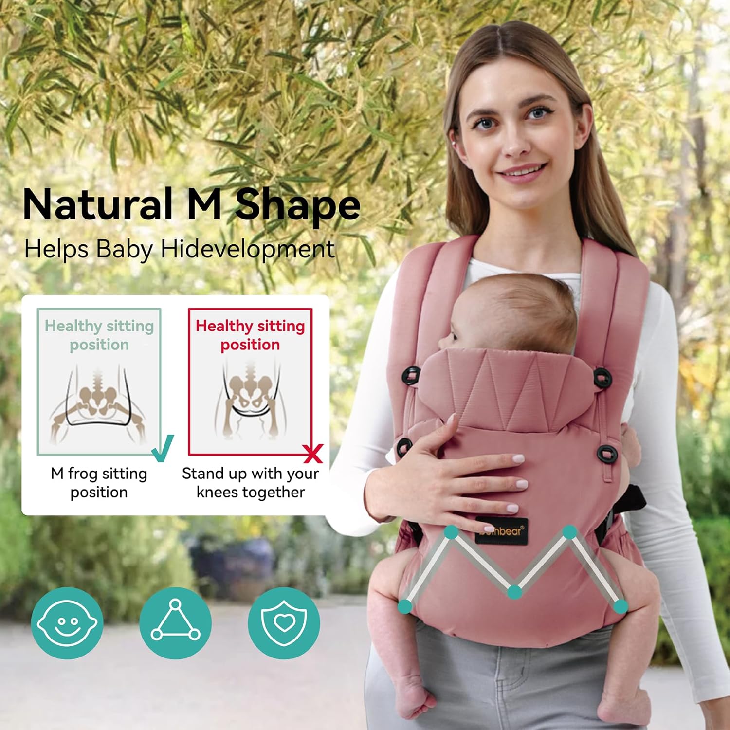 Baby Carrier Newborn to Toddler 7-45 lbs with Natural Material, Ergonomic Design,Versatile and Adjustable,Hands Free for Moms&Dads,Pink