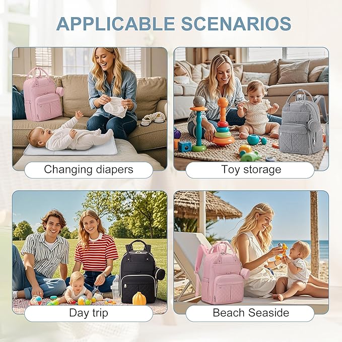 - 【Different Carrying Ways】This diaper bag can be used as a backpack, handbag, or hung on a stroller, its simple design makes it timeless and perfect for any occasions such as shopping, traveling, etc. Our diaper bag is not only a practical choice but also a stylish accessory. Its unisex design makes it suitable for both moms and dads