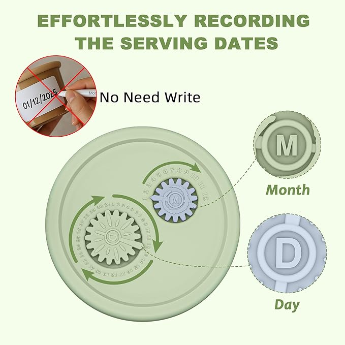 - 💫 Track Freshness with Built-In Date Markers: Never guess “Is this still good?” again! Our baby food containers' lids feature M (month) and D (day) markers to track prep dates. Baby food jars ideal for breastmilk storage, baby purees, or meal prep—minimize waste and maximize freshness!